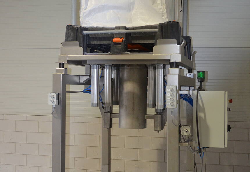 这种吨袋卸料站是格律克与领先的托盘化和物流解决方案供应商 Indus 共同开发的。它是可靠地存储、运输和卸载各类散装产品的高效方法。