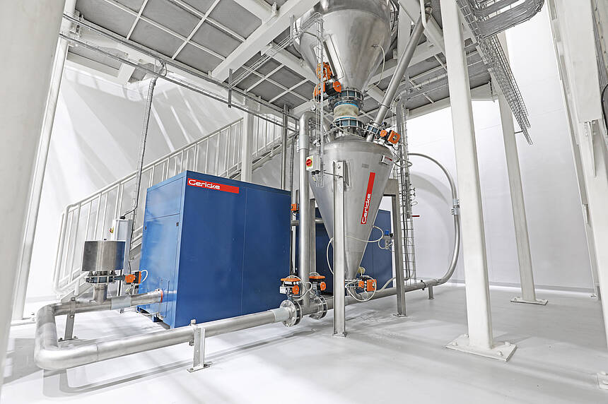 与使用旋转阀的稀相输送系统相反,该系统无泄漏,绝对防尘。