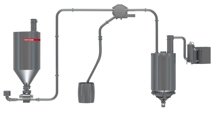 Gericke 的一系列预设计成套真空输送解决方案旨在通过文丘里喷射器或电动真空泵的驱动,协助卸料、料斗装料和再装料过程。密相系统也可以使用高性能真空输送系统来实现。在短距离内,可以采用密相气力输送模式。