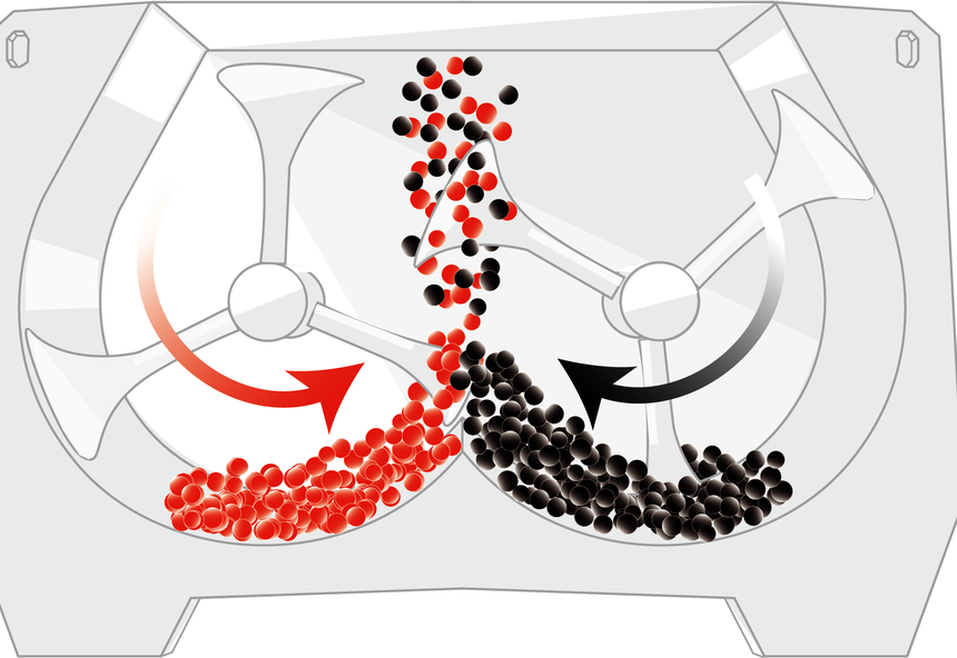 搅拌机使用两个反向旋转轴,形成一个机械流化区。它的最佳弗劳德数为1.1,可确保快速高效的径向和轴向混合,每小时最多可实现 16次混合循环。