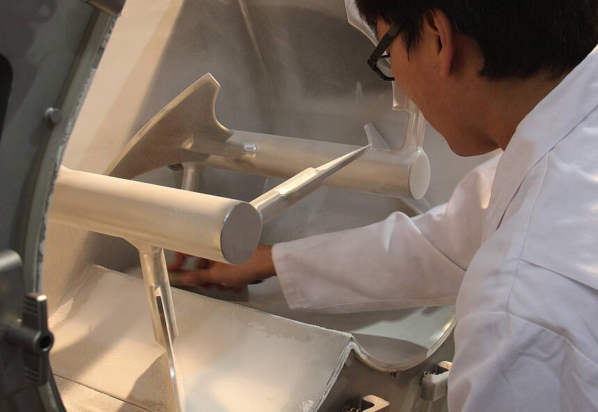 通过在混合腔室中形成的流化床,可以非常高效地添加液体。