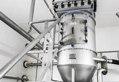 格律克连续式或间歇式混合器可同时满足固体支撑材料和注入溶液的特性。氮气覆盖、氧气吹扫和耐腐蚀性等规格均已纳入设备设计中。催化剂溶液通常喷洒在混合器内的陶瓷载体上。格律克为这一工艺步骤提供间歇式和连续式混合器。混合器内喷嘴的位置和施加的剪切力都经过优化,以保证最佳的产品质量。